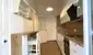 Voll ausgestattete Küche mit praktischem Abstellraum und Zugang zum Balkon