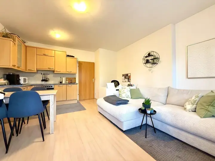 Diese helle 2-Zimmer-Wohnung überzeugt durch eine freundliche Wohnküche mit direktem Zugang zum sonnigen, südwestlich ausgerichteten Balkon. WC und Badezimmer (mit Badewanne) sind getrennt – das Bad befindet sich in gepflegtem Zustand. Ein großzügiger Kellerabteil sowie ein Tiefgaragenstellplatz sind im Preis inbegriffen.
