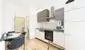 Küche mit Essbereich und Zugang auf den in den Innenhof gerichteten Balkon.