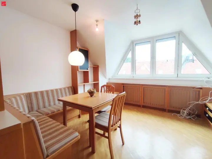 Es erwarten Sie Parkett - Böden, Qualitativ hochwertige Kunststoff Fenster, zwei helle Zimmer. Alle Möbel in der schönen Wohn - Küche sind vom