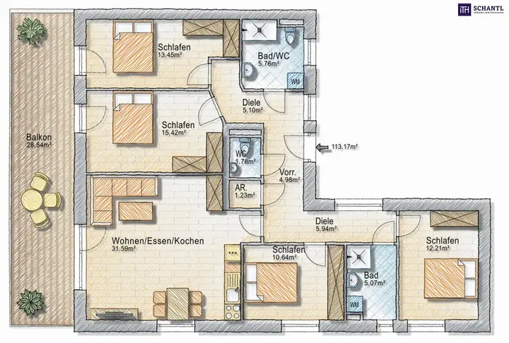 MEGA-Familienwohnung mit 4 Zimmern und zwei Bädern und Blick ins Grüne in einer ruhigen Sackstraße gelegen - 8041 Graz - PROVISIONSFREI!