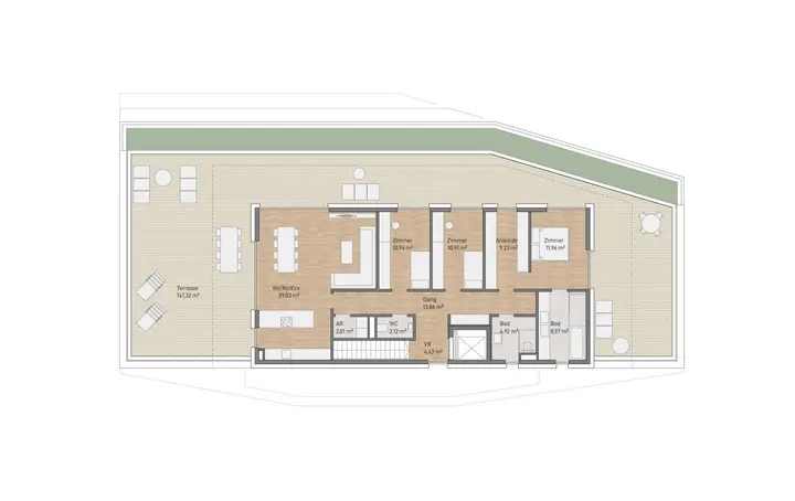 Dieses moderne und exklusive Penthouse vereint luxuriöses Wohnen mit zeitloser Eleganz. Großzügige, lichtdurchflutete Räume, hochwertige Design-Ausstattung und eine atemberaubende Dachterrasse mit Panoramablick schaffen ein einzigartiges Wohnambiente.