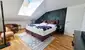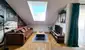 Vom Vorraum aus gelangt man in das WC und den angrenzenden Wohnraum mit Küche und Schlafbereich. Wem das Wohnkonzept zu offen gestaltet ist, kann den Schlafbereich mit einem Raumteiler abtrennen. Dank 2 Dachflächenfenstern und einem Balkon ist das Loft lichtdurchflutet. Angrenzend an den Schlafbereich findet man das Badezimmer mit verglaster Dusche & Handtuchtrockner und weiter den Dachraum der extra Stauraum bietet.