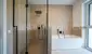 Bereits beim Betreten des Hauses begeistert die geschmackvolle Innenausstattung. Großzügige Raumhöhen von 3 Metern verleihen den Wohnbereichen eine beeindruckende Weite und sorgen für ein luftiges, elegantes Raumgefühl. Der edle Fischgrät-Parkettboden unterstreicht die exklusive Atmosphäre, während großflächige Fensterfronten die Räume mit natürlichem Licht durchfluten. Ein besonderes Highlight sind die flächenbündigen, raumhohen Innentüren, die sich nahtlos in das moderne Designkonzept einfügen und für eine klare, reduzierte Ästhetik sorgen. Bronze-Spiegelelemente im Eingangsbereich setzen raffinierte Akzente und verstärken das Gefühl von Eleganz und Großzügigkeit. Sie reflektieren das Licht auf stilvolle Weise und verleihen dem Entrée eine exklusive, einladende Wirkung.