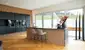 Dank der optimalen südwestlichen Ausrichtung profitiert die Villa von zahlreichen Sonnenstunden und einem lichtdurchfluteten Ambiente bis in die Abendstunden. Dies sorgt für ein angenehmes Wohnklima und eine besonders helle, freundliche Atmosphäre im gesamten Haus. Im Zentrum des Wohnbereichs befindet sich die hochmoderne Design-Küche, die mit einer edlen strukturierten Natursteinplatte und hochklassigen Miele-Einbaugeräten ausgestattet ist. Zu den Highlights gehören eine Einbaukaffeemaschine, Wärmeschubladen, ein Weinkühlschrank sowie ein innovativer BORA-Kochfeldabzug. Technisch auf dem neuesten Stand: Loxone Smart Home-System und in die Decke integrierte Lautsprecher sorgen für modernsten Wohnkomfort.