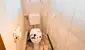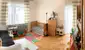 Im Obergeschoss sind ein weiteres Wohnzimmer bzw. Zimmer, ein Schlafzimmer, eine Küche, ein Badezimmer und ein getrenntes WC über einen zentralen Flur verbunden. Von der Küche gelangt man in das zweite Wohnzimmer. Ein Balkon ergänzt das Raumangebot auf dieser Etage.