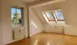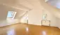 3 Zimmer + Diele: Zwei Schlafzimmer, ein großzügiger Wohn-/Essbereich mit offener Raumwirkung durch die Dachschrägen sowie zentrale Diele/Vorraum.