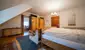 Vom Vorraum aus erreicht man zusätzlich das Badezimmer sowie das Dachgeschoss, in dem sich zwei weitere Zimmer befinden. Komplettiert wird das Raumangebot durch den geräumigen Keller, der nicht nur Stauraum bietet, sondern auch einen weiteren praktischen Zugang zum kleinen, aber gemütlichen Garten ermöglicht.