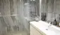 Alle Bäder sind mit großformatigem Naturstein (1,80 × 1,00 m) ausgestattet, was den Räumen einen architektonisch klaren, monolithischen Look verleiht.