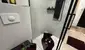 Das Badezimmer verfügt eine Dusche, ein WC und ist mit einer Waschmaschine indigniert mit einem Trockner ausgestattet.