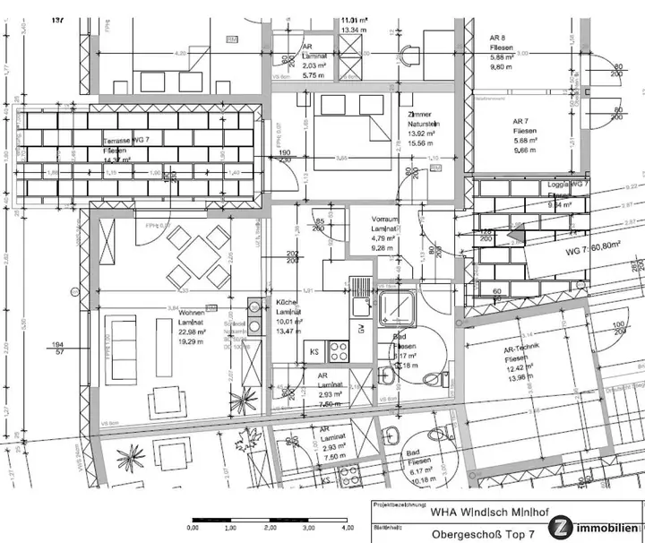 65,48m², Wohnzimmer, Küche, Schlafzimmer, Bad mit WC, 1.OG, Fernwärme / Miete: 617,32 /Anzahlung: 3.481,50