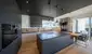 OG: Schlafzimmer mit Schrankraum, 2 Zimmer, 27 m² Vorraum/ Lounge Bereich, Bad mit Dusche und Badewanne, WC, 30 m² Balkon.