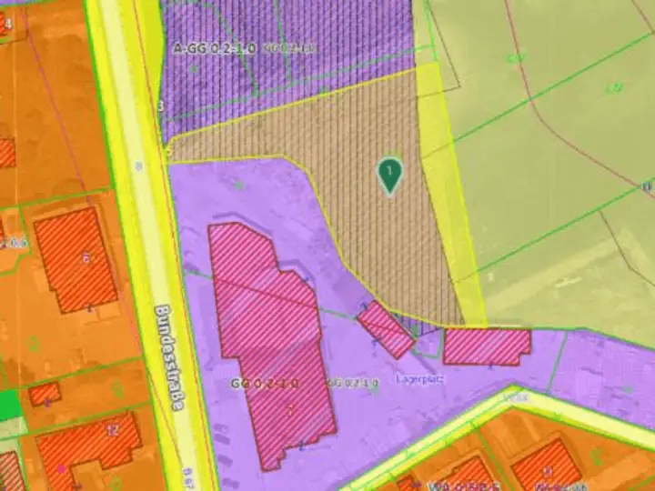 Die Grundstücksfläche umfasst laut Grundbuch rund 2.079 m² und besteht aus zwei ebenen, gut bebaubaren Parzellen. Die Widmung lautet A-GG 0,2–1,0, wodurch eine gewerbliche Nutzung mit flexibler Bebauungsmöglichkeit gegeben ist.