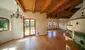 Vom Wohn- und Essbereich führt zudem eine elegante gewendelte Treppe ins Obergeschoss, wo das offene Treppenhaus mit formschönem Geländer, hellen Dachfenstern und der hohen Decke mit sichtbaren Holzbalken eine besonders einladende Stimmung erzeugt.