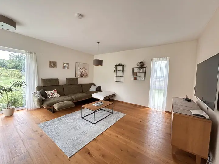 Dieses lichtdurchflutete Einfamilienhaus überzeugt durch seine durchdachte Raumaufteilung, hochwertige Bauweise und ein herrliches Grundstück in ruhiger Lage. Schon beim Betreten begeistert der offene, großzügige Wohn- und Essbereich mit großflächigen Fenstern, die viel Tageslicht hereinlassen und eine warme Wohnatmosphäre schaffen.