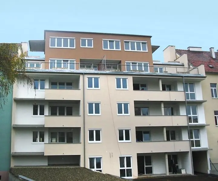 Die 2-Zimmer-Wohnung befindet sich im 4. Obergeschoss mit Lift und verfügt über einen Wohn-/Ess-/Kochbereich, 1 Schlafzimmer, Badezimmer, WC sowie über einen Vorraum und eine Abstellnische. Zusätzlich bieten 2 Dachterrassen inkl. Loggia (insgsamt 41,5 m²) Platz für Ihren individuellen Freiraum und laden zum Verweilen ein. Weiters verfügt die Wohnung über ein Kellerabteil, welches zusätzlichen Stauraum bietet, und auch ein Tiefgaragenplatz ist bereits in der Miete inkludiert.