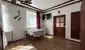 Im Erdgeschoss wurde eine kleine Ein-Zimmer-Wohnung mit Bad und Toilette und eigenem Eingang eingerichtet.