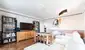 Der geräumige Wohn- und Essbereich ist das Herzstück der Wohnung. Hier sorgt die durchgehende Stuckatur an den Decken für einen Hauch von Eleganz und verleiht dem Raum eine stilvolle, edle Note. Von hier aus hat man direkten Zugang zur verglasten Loggia, die durch ihre neuen Fenster bestens isoliert ist. Die Raffstores bieten optimalen Sonnenschutz und sorgen dafür, dass der Raum stets angenehm temperiert ist, während die Ost-West-Ausrichtung der Wohnung dafür sorgt, dass sie zu jeder Tageszeit hell und freundlich ist.