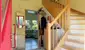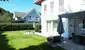 Im Erdgeschoss befindet sich der großzügige Wohn- und Essbereich mit direktem Zugang zur westseitig ausgerichteten Terrasse und in den Garten. Durch die offene Galerie im Obergeschoss wirkt dieser Bereich besonders hell, offen und großzügig. Ein Kamin sorgt für wohlige Wärme und eine gemütliche Atmosphäre, während die große Fensterfront viel Tageslicht hereinlässt und einen schönen Blick ins Grüne bietet. Die überdachte Terrasse lädt zum Verweilen im Freien ein – im Hochsommer spendet ein großer, alter Nussbaum angenehmen Schatten.