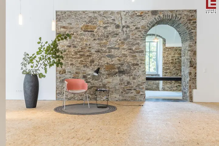 Das Herzstück dieser Immobilie besteht aus einem ca. 145 m² großen Wohnbereich mit knapp 4 Meter Deckenhöhe, umrahmt von einer in Teilen freigelegten, rund 80 cm dicken Natursteinmauer, die als Wärmespeicher fungiert. Parallel dazu verläuft der Nebentrakt mit ebenso hoher Decke, in dem die Küchenanschlüsse sowie ein ca. 13 m² großes Bad untergebracht sind. Alle Wände bestehen vollständig aus Naturstein und wurden teilweise fachgerecht freigelegt.