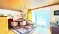 • Wohnzimmer 28 m² mit Kachelofen und Türe in den Garten