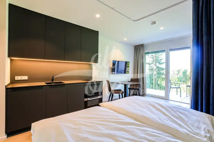 Die charmanten Micro-Apartments bieten auf ca. 26 m² Wohnfläche einen idealen Rückzugsort für alle, die ihren Urlaub am traumhaften Wörthersee verbringen möchten. Die Apartments sind modern und komfortabel gestaltet, ausgestattet mit einem Balkon, einer Einbauküche, einem Badezimmer und einem Boxspringbett.