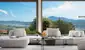 Im Sommer erweitert sich der Wohnraum nach draußen auf die großzügige Terrasse von der aus sich der phantastische Blick über die Veldener Bucht genießen lässt.