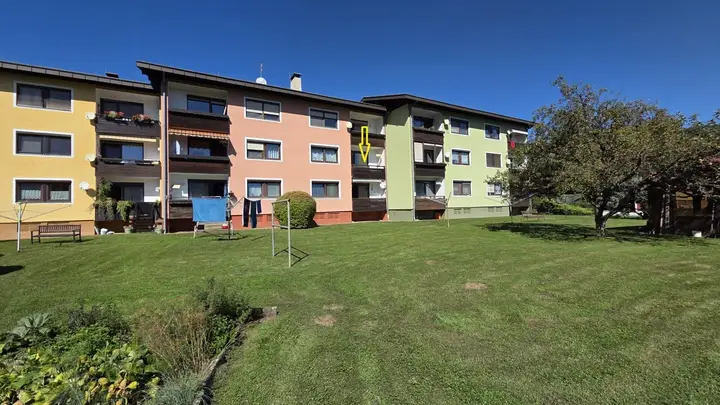 Parkplatz sowie ein Gartenanteil sind auf der großzügigen Allgemeinfläche vorhanden aber nicht separat zugewiesen.