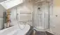 Im Obergeschoss erwartet Sie eine elegante Galerie mit Zugang zu einem kleinen Balkon, der den Blick über den Garten freigibt. Zwei Schlafzimmer sowie ein Badezimmer mit Toilette ergänzen diesen Bereich. Der moderne Zubau mit ca. 46 m² beherbergt ein großzügiges Schlafzimmer mit Ankleideraum sowie ein offen gestaltetes Badezimmer mit WC en-suite. Von hier aus geht es hinaus auf eine riesige Terrasse mit Whirlpool – ein Ort der Ruhe, der Entspannung und des puren Luxus.