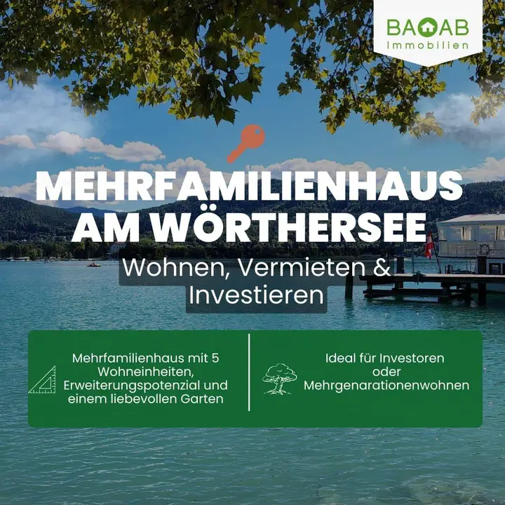 Ein modernes, vielseitiges und gepflegtes Mehrfamilienhaus in traumhafter Lage am Wörthersee. Fünf Wohneinheiten, Erweiterungsmöglichkeiten, moderne Haustechnik und großzügige Außenflächen machen dieses Objekt zu einer erstklassigen Wahl für Anleger, Familien und Investoren.