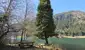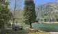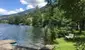 Zufahrt - bereits vorhandene Parkfläche an der Zufahrtsseite, dann ein sanfter Hang hinunter zum See.