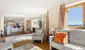 Der großzügige Eingangsbereich führt direkt in den lichtdurchfluteten Wohn- und Essbereich mit offener Küche und einer großen, südwestlich ausgerichteten Terrasse, auf der man Mahlzeiten im Freien genießen, die Aussicht auf die umliegenden Berge bewundern und den Moment bewusst erleben kann.