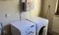 Badezimmer mit WC und Dusche mit Waschmaschine, kleine Küche( 2 m2), Schlafzimmer mit Doppelbett, ein kleines Studio mit Stockbett, Wohnzimmer mit Essecke und Austritt auf die Loggia.