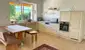 Herzstück der Wohnung ist der etwa 30 m² große, helle Wohn- und Essbereich mit direktem Zugang zur großzügigen Terrasse. Die offene Küche im charmanten Landhausstil lädt zum Kochen und Genießen ein – mit Freunden, Familie oder einfach für sich.