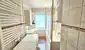 Das Badezimmer verfügt über ein Fenster, was für eine natürliche Belüftung sorgt und eine Badewanne für entspannende Stunden.
