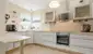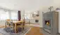 Der offene Koch-/Wohn-/Essbereich bietet durch großzügige Fensterfronten ein lichtdurchflutetes Ambiente und der stilvolle Specksteinofen schafft eine behagliche Wohnatmosphäre sowie wohlige Wärme. Die moderne, hochwertige Küche ist perfekt ausgestattet und fügt sich harmonisch in das Wohnkonzept ein.